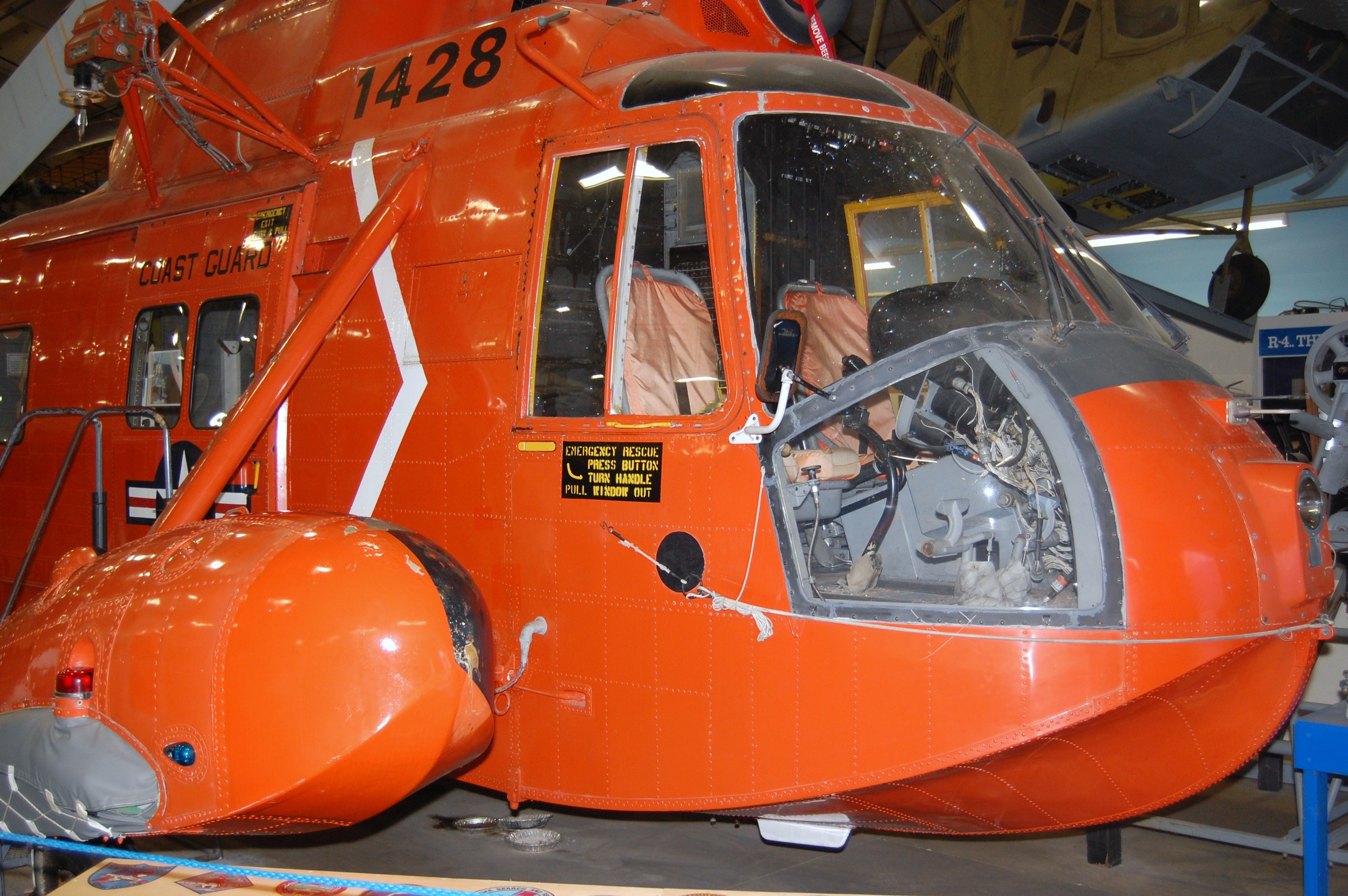 The HH-52A has a watertight hull, with pontoons, so it can safely land on water and perform difficult rescues, but it usually deploys the rescue hoist you can see on the starboard side of the fuselage, just above the door. Airframe technicians and other USCG personnel were put through HH-52 familiarization courses at the Sikorsky factory school, as well as airframe and powerplant training at the Aircraft Repair & Supply Center at USCG Elizabeth City, North Carolina. No less than 151 HH-52A helicopters were taken into service by the USCG, 17 of which are preserved in museums. This particular example is on display at the New England Air Museum at Windsor Locks, Connecticut. One HH-52A, #1394, is still being flown in private hands, and makes appearances at air shows around the US, a real tribute to crew members who flew the Seaguard, and who saved more than 1500 lives between 1963 and 1989. It was replaced by the HH-65A Dolphin (derived from the Eurocopter 336 G1 Dauphin).