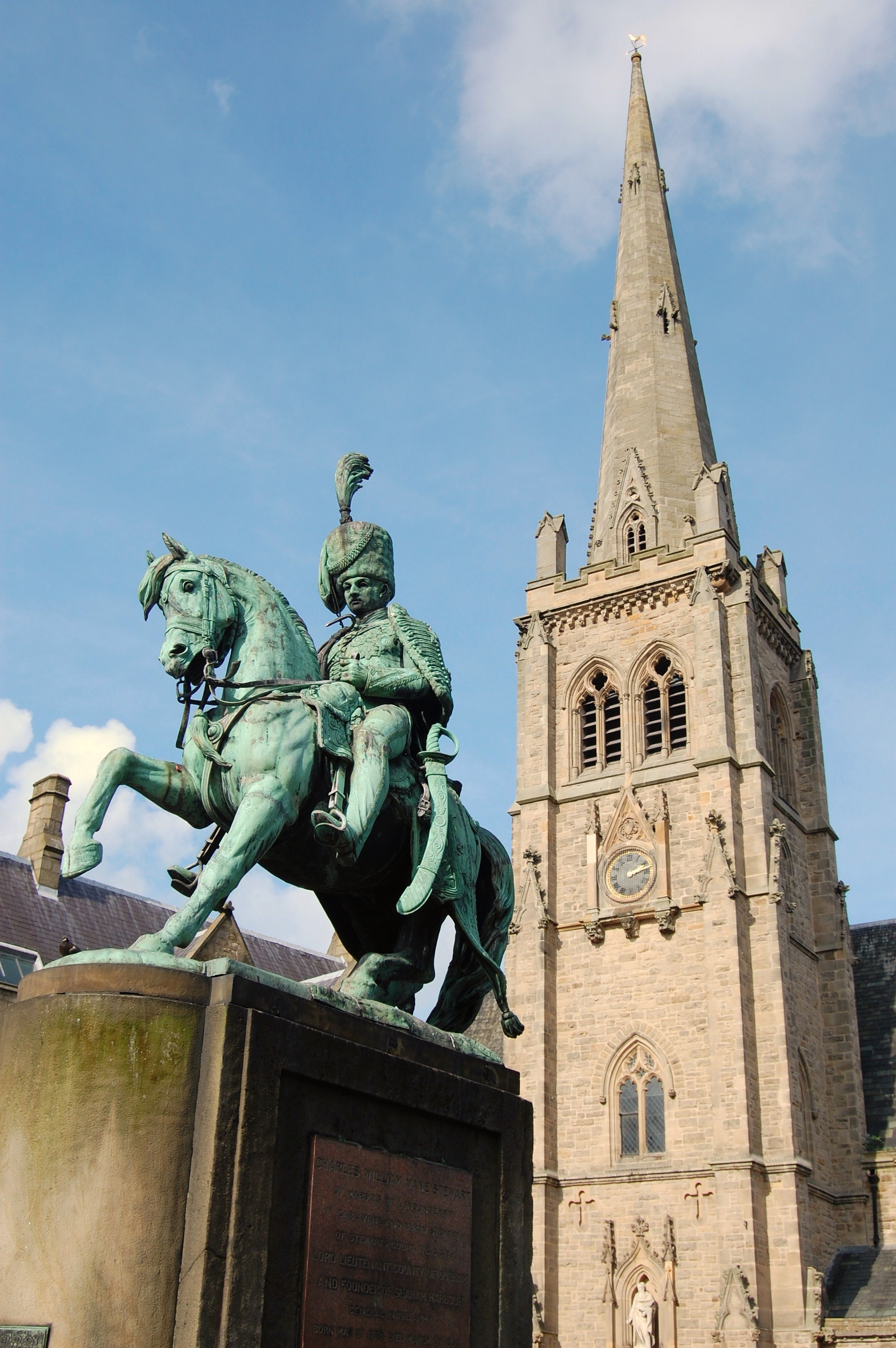 Tags: 'Fighting Charlie', 'St. Nic's', 'sword in hand', 'the church in the marketplace', 'the evangelical tradition', 1099 - 1128, 16th century, 176 AD, 1778-1854, 17th century, 1807-1812, 1858, 19th century, 21st Lancers, 2nd Lieutenant, 2nd Lieutenant Winston Spencer Churchill, 2nd September 1898, 3rd Marquis of Londonderry, a fine city, Ancient Greece, Baron Stewart, Battle of Omdurman, bishop, Bishop Flambard, boots, British Army, bronze, Capitoline Hill, Capitoline Hill in Rome, Carlo Marochetti, cavalry charge, cavalryman, Central Europe, Charles William Vane Stewart, church, church had fallen in a ruinous state, Church of England, close to the surface, coal by sea, commanded regiments, community coffee lounge, cordwainer, Cordwainer's Guild, County Durham, dragoons, Duke of Wellington, Durham, Durham Market Place, Durham University, Earl Vane, earliest surviving example cast in bronze, England, enormous coal reserves, equestrian statue, Europe, fabulously wealthy, fine shoes, five days a week, Flambard, future Prime Minister, General in the British Army, General Sir Herbert Kitchener, Great Britain, great grandson, guilds, house of worship, hussars, Italian sculptor, Lady Catherine Bligh, Lady Frances Anne Vane-Tempest, landed estate, large student population, larger than life-size, last major cavalry charge, London, Lord Lieutenant of the County of Durham, Marcus Aurelius, Mercers' Guild, Middle Ages, mounted bronze statue, neo-Gothic edifice, one of the Duke of Wellington's favourite generals, Palace of Westminster, Peninsular War, pews, pews in the church, Portugal, Prime Minister, Raffaelo Monti, religious guilds, Richard I, Rome, Seaham Hall, Seaham Harbour, shoes, soaking up the atmosphere, Spain, special masses, St. Nicholas Church, strange co-incidence, Sudan, Sudanese, top five UK learning institutions, trade associations, tribute of a statue, victorious general, Winston Spencer Churchill