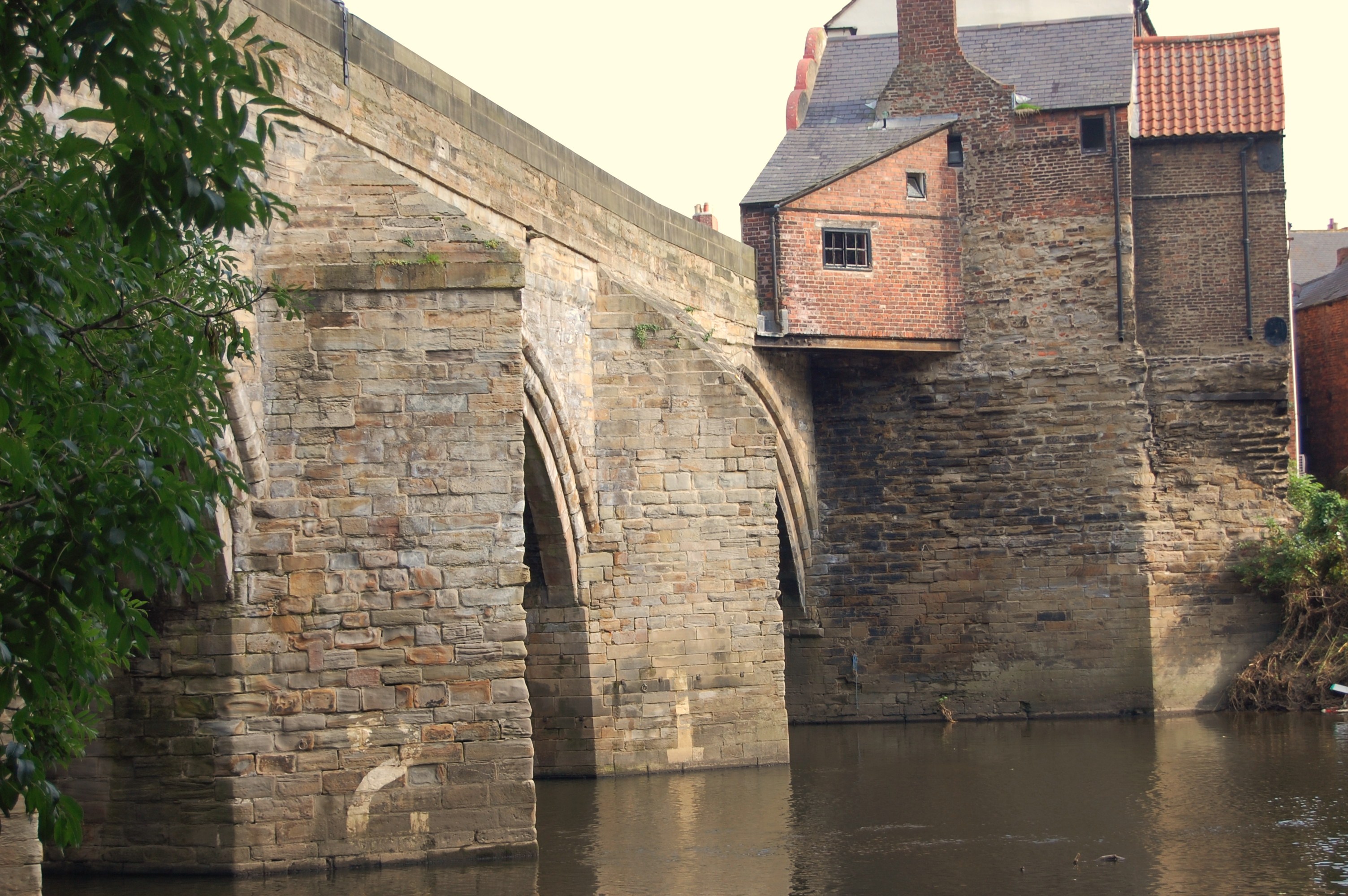 Here you can see some of the Elvet Bridge and admire the graceful form of the arches. English Heritage has assessed the bridge as a ‘Grade 1’ Listed Building (Building No. 110188), and Listed Status was achieved on 30 April, 1971. By the end of the Middle Ages, travel had become more commonplace, and bridge chapels were either demolished or re-purposed. Some chapels survived because they were part of the bridge structure. If you look across the river you can see that a fairly modern brick addition has been built out at an angle over the Wear, but there are also substantial remains of the original chapel, including the foundation and the lower section. On the other bank, the lower portion of St John’s was turned into a ‘House of Correction’! The former St. Andrew’s is now an Italian bistro, ‘Melanzana’, offering some delightful specialties. Make sure to check the ceilings as well as the menu, though, as you will find some lovely old oak beams.