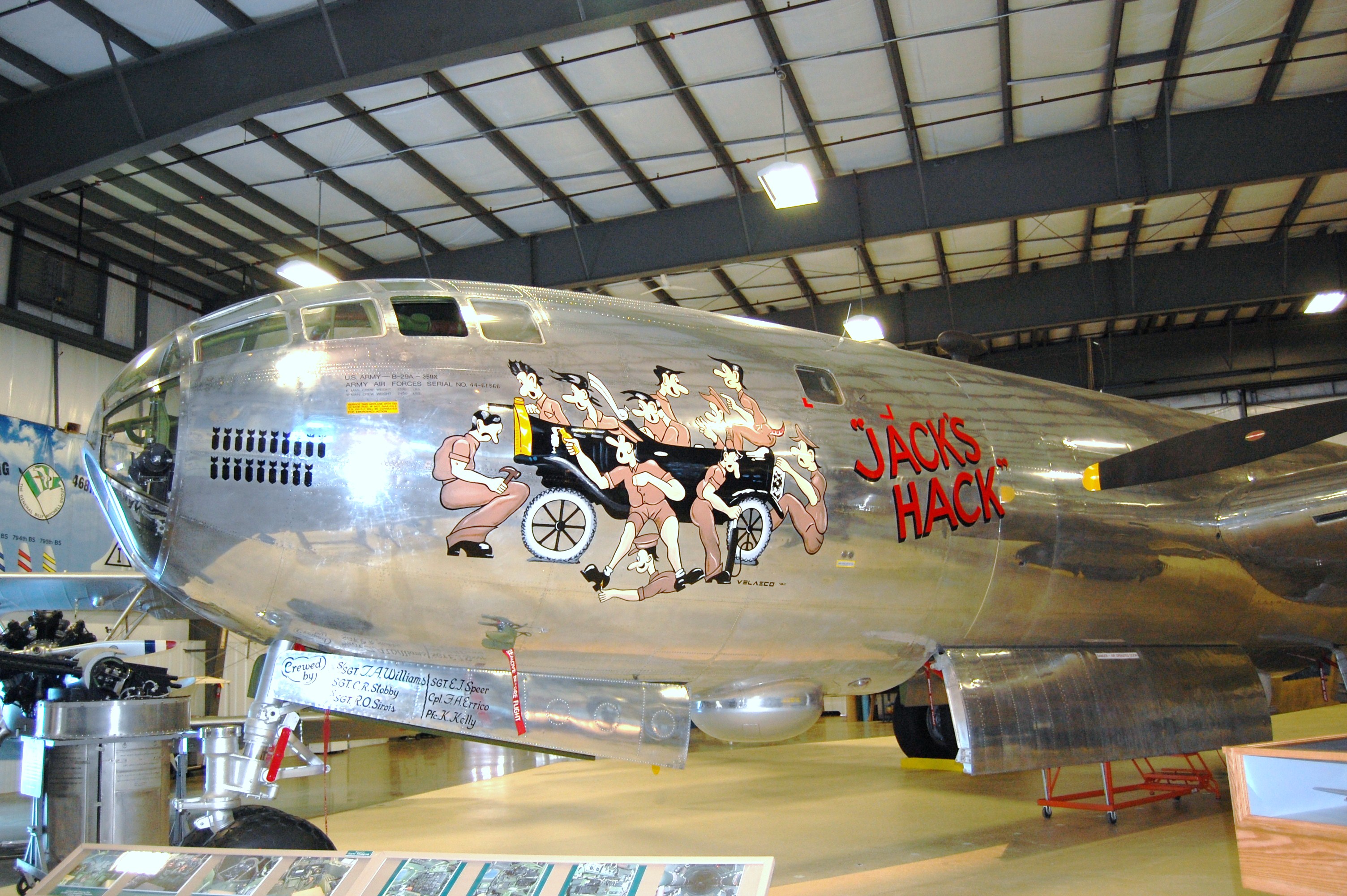 The aircraft is actually a composite airframe consisting of most of ’44-61975′ and the rear fuselage of ’44-61739′, both of which came out of the US Army Proving Ground at Aberdeen, Maryland (most other existing B-29s were recovered from the Naval Air Weapons Station at China Lake, California).