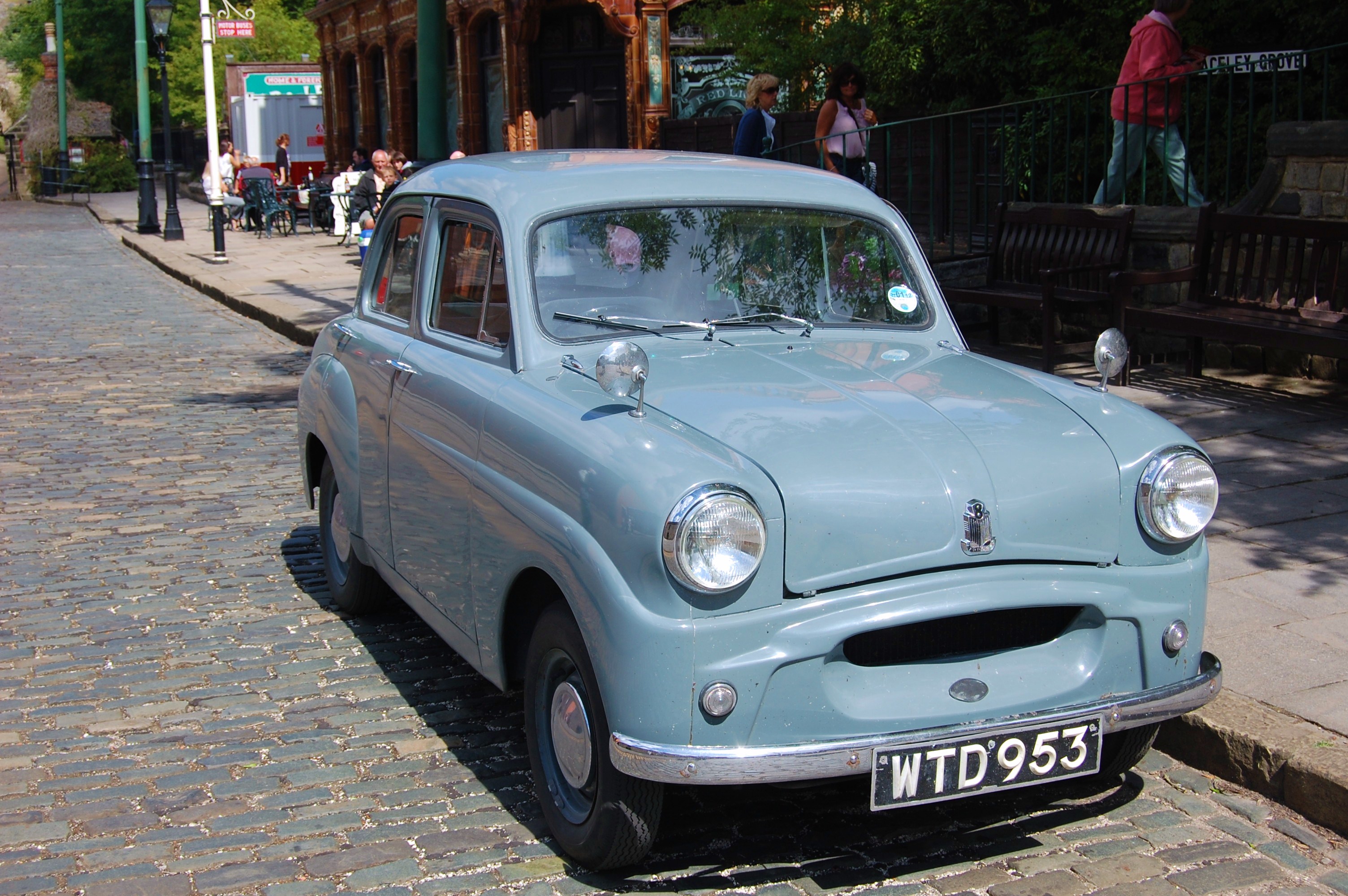 Tags: 'I'm back!', 'The Shining', 1903, 1950s, 1953, 26hp, 803cc overhead-valve engine, American, Austin A30, £2500, £481, boot-lid, classic car, cobbled street, Coventry, Crich, Crich Tramway Village, Derbyshire, detail design changes, developed version, edge of the Peak District, England, Europe, European, European trip, folding down the rear seat, founded in 1903, Great Britain, hill-top village, home market, hydraulic brakes, increased power, initial launch model, Jack Nicholson, launch price, Morris Minor, motor vehicle, museum, Museums, National Tramway Museum, new model, Nikon, no opening boot-lid, Peak District, photographs, pre-war model, rear seat, Second World War, small saloon car, somewhat staid motor cars, space in the boot, spectacular facility, Standard 8, Standard 8 Basic, Standard Motor Company Ltd, Standard Ten, tourist sites, trip to Europe, venues, West Midlands, World War Two