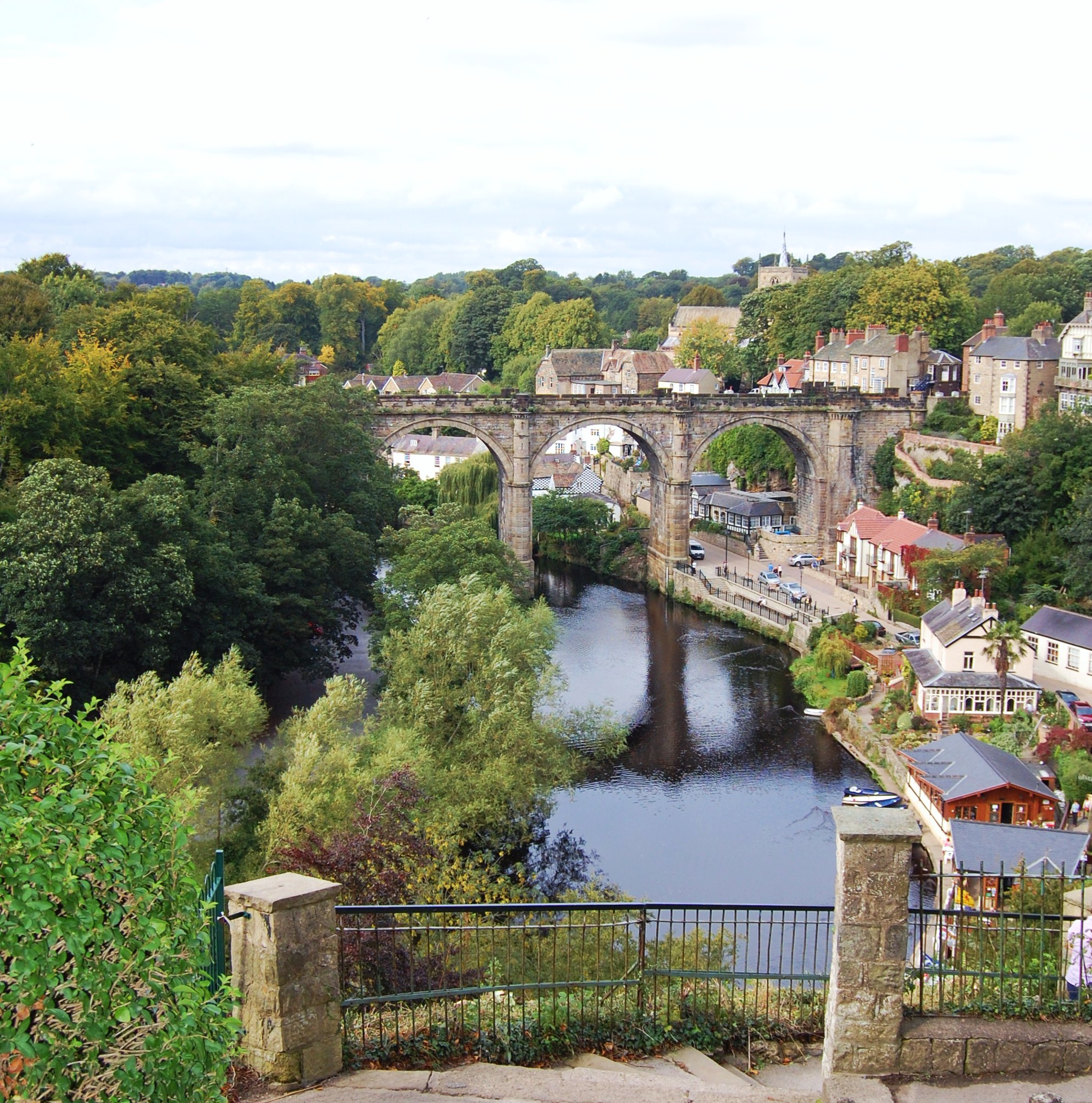 As the River Nidd flows through the Mediaeval town of Knaresborough, it affords the visitor some spectacular views. Set in a wooded gorge, the river is spanned by an impressively crenallated railway viaduct, built in 1851. Thomas Grainger designed this to carry the Leeds and Thirsk Railway into the centre of the town. This lovely stone structure is still in use, with Northern Rail running services to York and Leeds using their Class 142 and 144 ‘Pacer’ diesel multiple units (built by British Rail Engineering Limited at Derby). There are many restaurants, museums and other attractions in Knaresborough, and you can hire a rowing boat and slowly drift along, looking up at the impressive ruins of Knaresborough Castle, and the wooded slopes along the Nidd. A truly beautiful river.
