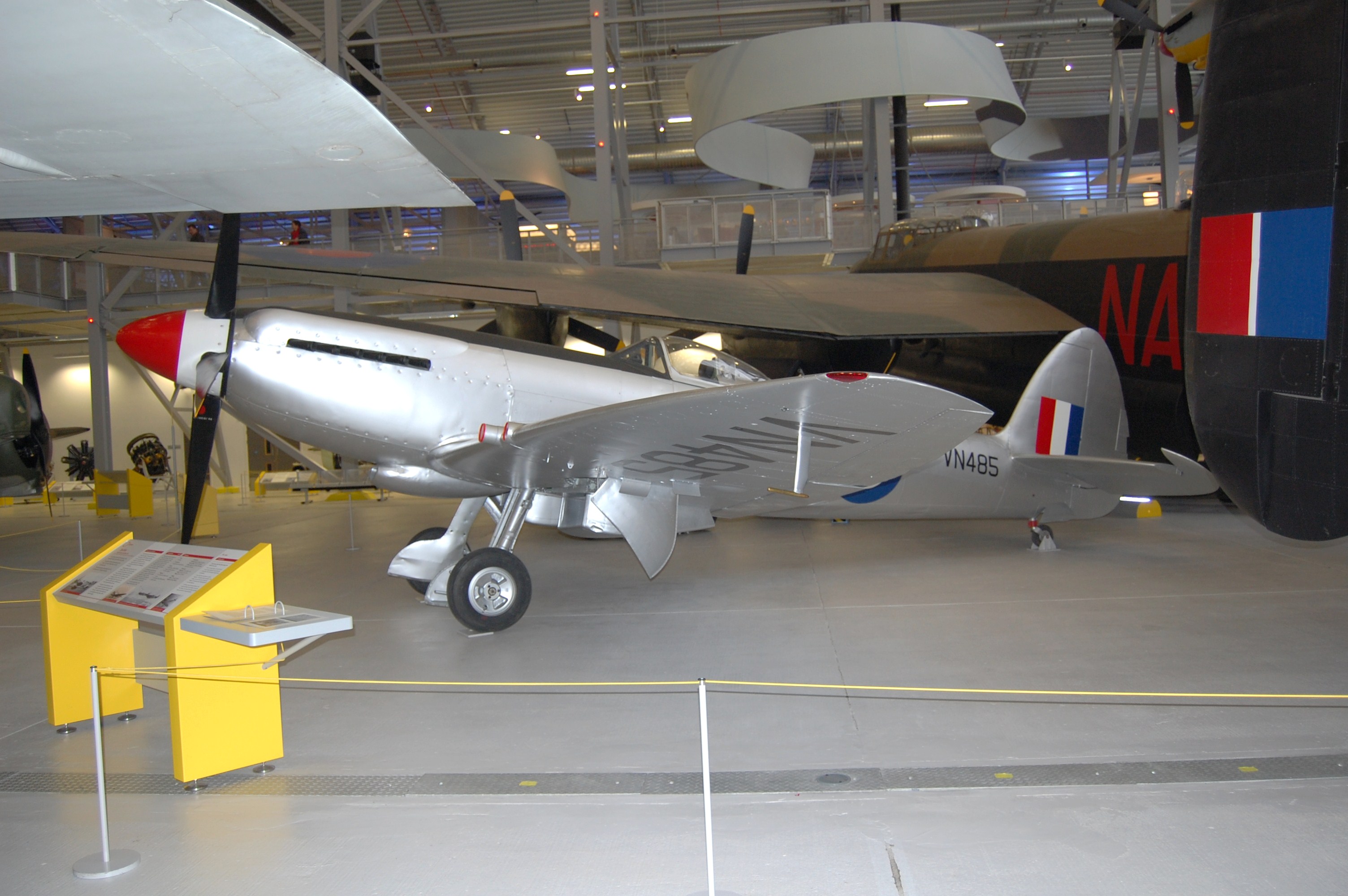 Eventually, it was donated to the Imperial War Museum, and was delivered to their Duxford Airfield, in the United Kingdom, in 1996. In so doing it became one of only three F.24 survivors – all non-flying, and all in museums in the U.K. (the RAF Museum has one at Hendon, and the Solent Sky museum in Southampton has the other). The Imperial War Museum undertook a major restoration exercise on VN485 in 2004, stripping the airframe down to bare metal and removing and renovating many components. It looks beautiful, you must admit, but I shall let you into a little secret. From immediately in front of the cockpit, from the firewall forward, there is – nothing. Well, actually, there is a framework which holds the cowlings and other panels in place, and an internal red-painted tubular support for the spinner and propeller blades – no engine bearers or accessories and no Griffon engine!