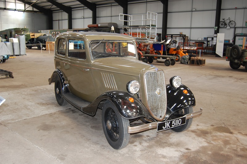 Here we can see a fine example of the breed at the Lincolnshire Aviation Heritage Centre. This is typical of the cheap cars often acquired by RAF aircrew, who regularly burnt out engine valves and blew cylinder heads on the 100 to 150 octane-rated aviation spirit which somehow accidentally found its way into fuel tanks; still it would return 32mpg (27mpg US). The Model Y could be pushed to nearly 60 mph, but I would NOT care to do this as its braking power, even on a dry road, could be be described as ‘marginal to non-existent’. Although the little Ford was usually finished in the traditional ‘Ford black’, I have seen two-tone ‘black over vine green’; this one, however, is finished in a rare colour, ‘Cordoba grey’. The registration plate says ‘JK 5110’. Assuming this is the original, we can narrow it down to just ONE town – Brighton – under the old pre-war system, that is. The two-door saloon was called a ‘Tudor’ by Ford, and the four door, somewhat logically, a ‘Fordor’. This fine example has had modern, well, 60s style, indicators (American – ‘blinkers’) fitted. These are identical to those used on certain styles of Dalek, from the BBC series, ‘Dr Who’! Nice touches include the wire wheels, and the optional, sliding sun-roof chosen by the original buyer.