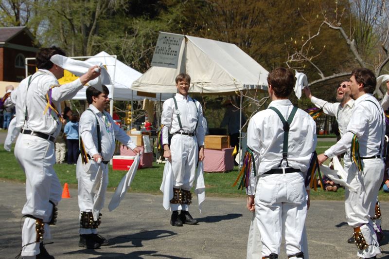 Yes, Terry Pratchett is to Morris dancing what Dashiell Hammett is to the snap-brim fedora. What of the Cotswold-style side shown above, having a simply splendid time? Well, they are not capering around somewhere in the English sunshine – they are performing a ‘set’ in the grounds of the historic Federal Period house, Gore Place, in Waltham, Massachusetts. Morris – the universal language of folk dance, and with an honourable place in literature, too!